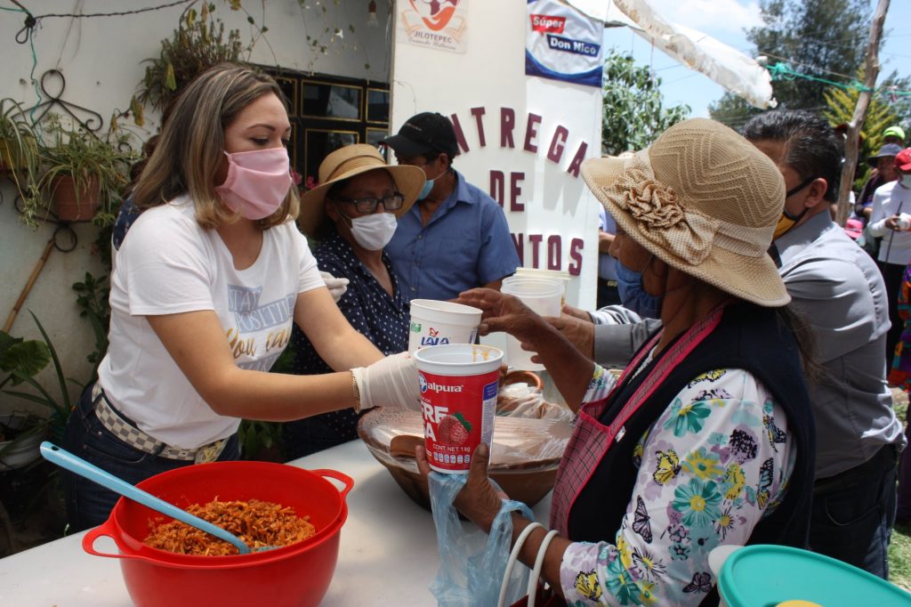 La Presidenta Lluvanitzy Ram铆rez Montiel, el Director y parte del personal de la Instituci贸n proporcionaron alimentos preparados a las personas de la Comunidad de San Juan Acazuchitl谩n.