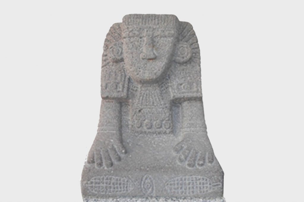 En el patio del Palacio Municipal se halla una de las representaciones de esta deidad, localizada en la comunidad de Dexcaní Bajo; aunque según los especialistas, dicho monolito no parece ser una pieza labrada en la Época Prehispánica.