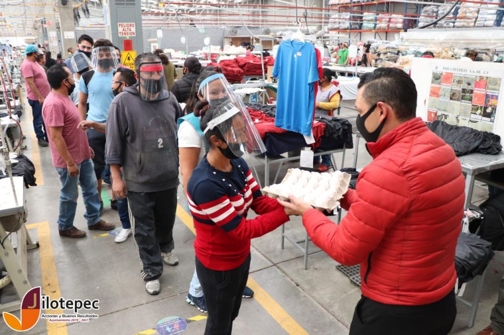 Con el prop贸sito de apoyar a la econom铆a familiar, el Ing. Agust铆n Bonilla, Presidente Municipal, entreg贸 paquetes de huevo a las y los trabajadores del municipio.