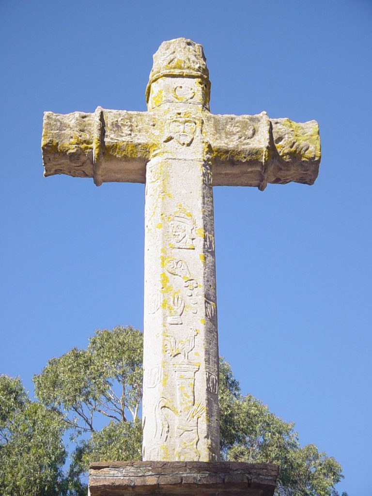 Como la mayoría de las cruces construidas en el territorio nacional durante el siglo XVI, la que hoy nos ocupa servía para evangelizar a la población indígena, puesto que en su estructura se encuentran talladas una serie de figuras en relieve que hacen referencia a la Pasión y Muerte Jesucristo, conocidas como “Arma Cristi”.